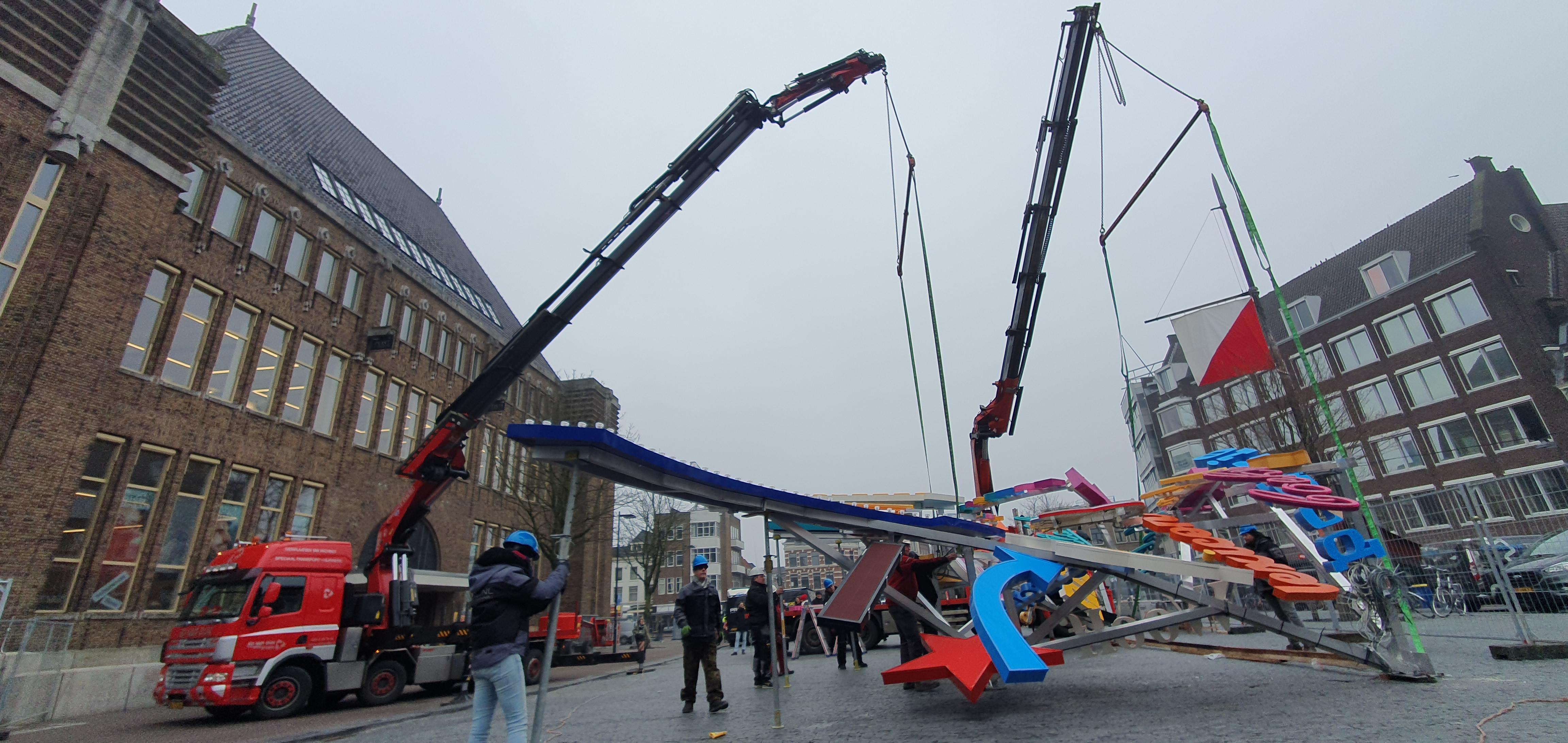 Bij de bibliotheek Utrecht heb ik samen met het team van Maarten Baas ervoor gezorgd dat het kunstwerk 'Intelectual Herritage' aan de gevel boven de luifel kwam te hangen.